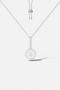 تم صنع هذا السوار يدويًا من الفضة الإسترلينية، والحرف مرصع بقطع صغيرة من الزركونيا المكعبة البيضاء على ميدالية من عرق اللؤلؤ.
